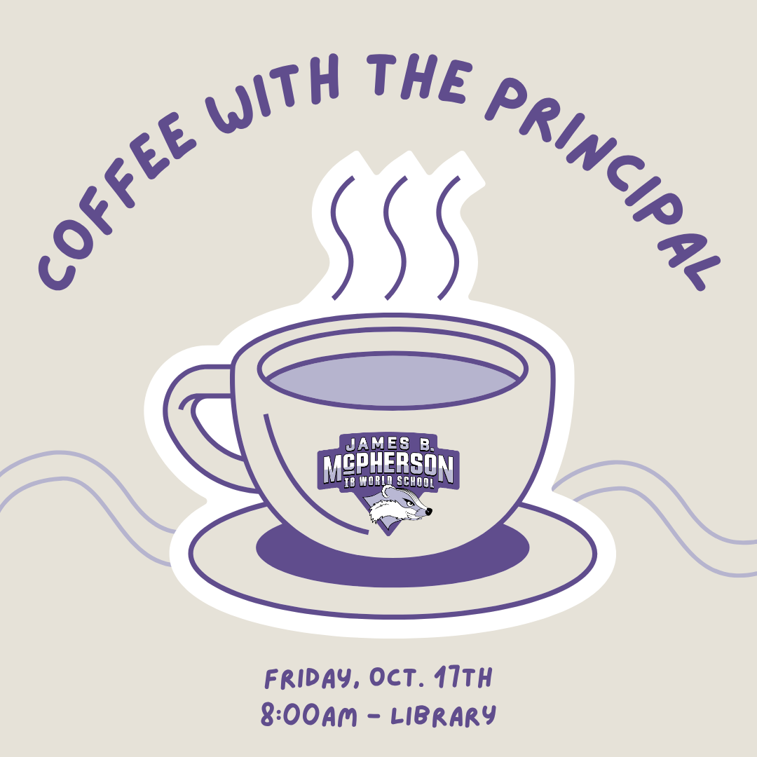 We will host our next Coffee with the Principal on Friday, October 17th, at 8am in the School Library. Our next Hot Topic will be: School Safety. Join us and participate in the conversation. We can't wait to see you there!